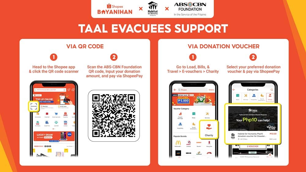 Shopee also invites users to donate to those affected by the taal eruption and other emergencies through its partner charities found on the app.