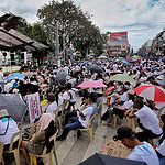 As the sun rose later in the afternoon, some attendees used umbrellas while others resorted to makeshift cloths to protect themselves from the heat on the grassy and muddy grounds of the SRP. Helen, who sat on a folding chair since their arrival, admitted to feeling some discomfort and mentioned that it was their first time attending a rally organized by the INC.